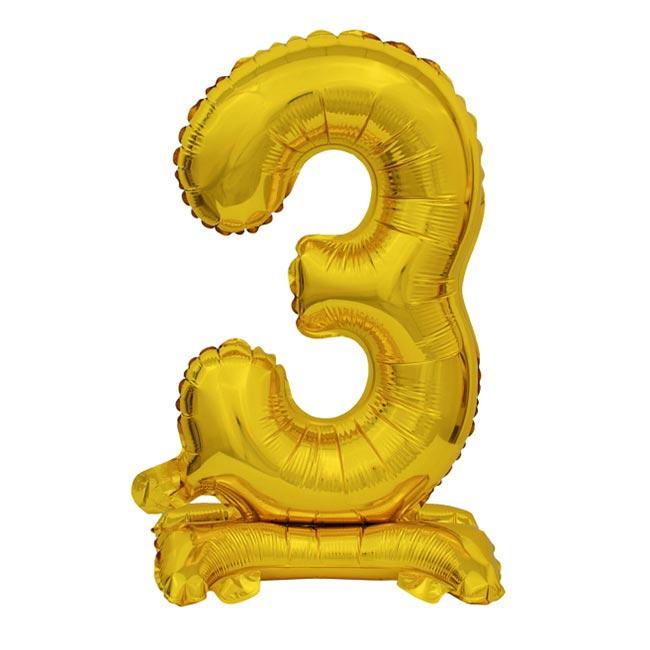Folienballon mit Standfuß Zahl in Gold 38 cm-3