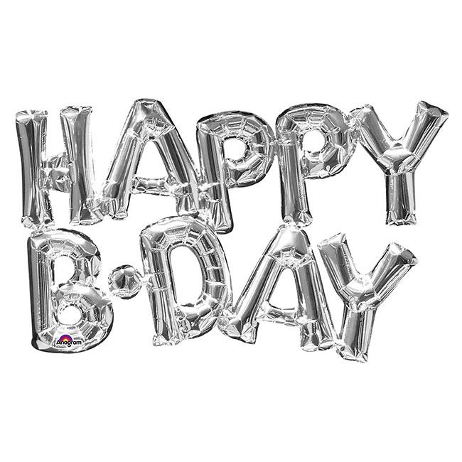 Artikel: Folienballon Schriftzug "Happy B Day" 76 x 48 cm-silber