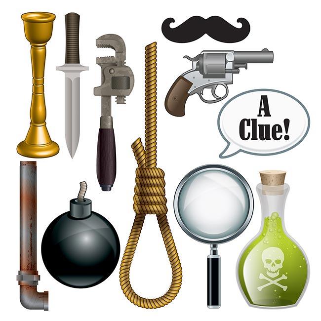Das Foto-Accessoire Set "Werkzeuge des Verbrechens" besteht aus elf Teilen, mit denen Sie jede Gangster oder Räuber-Party hervorragend ergänzen können. Die einzelnen Teile sind aus Pappe und beidseitig bedruckt. Mit der Lupe, dem Kerzenleuchter, einer Pistole und möglichen Tatwaffen wird Sie den Täter bestimmt überführen können!