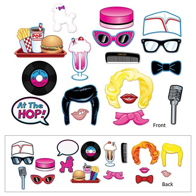 Mehr Info: Verpassen Sie Ihren Erinnerungsfotos ein Upgrade! Dieses Foto-Requisiten-Set sorgt auf Ihrer 50ies-Revival-Party für jede Menge Partyspaß!