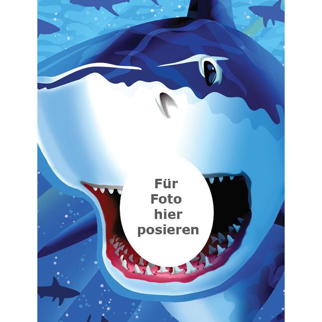 Mit dieser aufregenden Fotowand hat man auf einer Party jede Menge Spaß! Denn diese Fotowand zeigt einen riesigen Hai und vor allem sein großes Maul. Und in dieses Maul soll das Gesicht der Gäste! Ja, Sie haben richtig gehört. Der Kopf wird durch eine Öffnung gehalten und schon kann man auf den Auslöser drücken und hat ein verrücktes Foto mit einem Hai! Eine witzige Idee, die garantiert jede Party auflockert und für gute Stimmung sorgt. Die Fotowand ist ca. 100 cm breit und ca. 127 cm lang. Sie besteht aus Kunststofffolie.