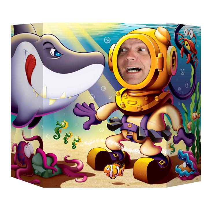 Mehr Info: Gestalten Sie schöne Erinnerungsfotos mit dieser Fotowand. Auf dem abgebildeten Taucher ist das Gesicht ausgespart, so dass die eingeladenen kleinen und großen Gäste hindurchsehen können.