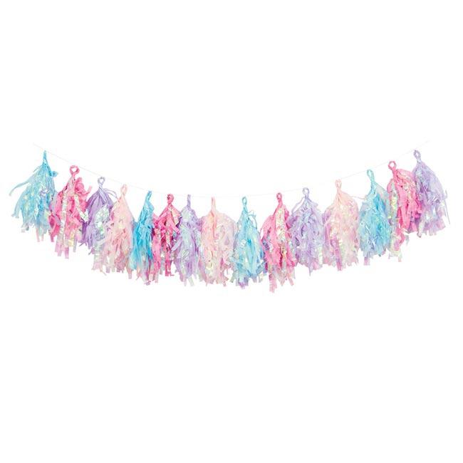 Mehr Info: Die einzelnen Fransenelemente der Girlande bestehen aus Seidenpapier und metallischer Folie.