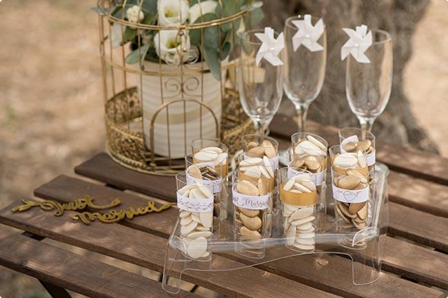 Das Geschenkband-Set "White Wedding" ist selbstklebend und besteht aus Polyester. Im Lieferumfang enthalten sind 4 verschiedene, ca. 1,5 cm breite und ca. 2 m lange Satinbänder. Ein Band ist golden, die anderen drei sind Weiß. Der Druck auf den weißen Bändern ist golden. Ein Band ist mit einem filigranen Blättermuster bedruckt, eines mit den verzierten Worten „Just Married“ und ein Band ist mit „Love You“ bedruckt, welches zwischen den Worten noch ein Herz formt.