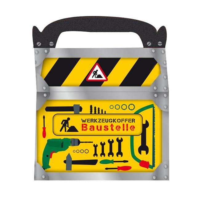 Die Geschenkboxen "Baustelle" sehen aus wie echte kleine Werkzeugkoffer! Bei Lieferung müssen die Boxen aus Pappe noch zusammengesteckt werden und können noch mit dem Namen des Beschenkten versehen werden. Die Boxen werden im 6er Pack geliefert und sind ca. 15 cm breit, ca. 8 cm tief und ca. 9,5 cm hoch (Füllhöhe).