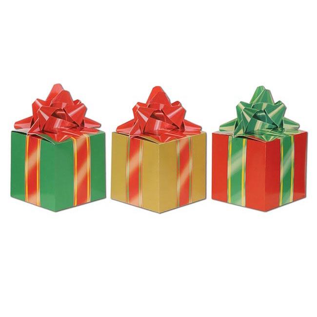 Wenn Sie gerne Kleinigkeiten verschenken möchten und noch eine Verpackung dafür benötigen oder einfach nur etwas suchen, das zumindest so aussieht wie ein Geschenk, dann haben Sie mit den Geschenkboxen "Weihnachten" die richtige Wahl getroffen! Die kleinen Boxen sehen aus wie ein Weihnachtsgeschenk und können ganz einfach gefaltet und zusammengesteckt werden. Natürlich können Sie die Boxen auch mit kleinen Geschenken befüllen. Die obere Seite ist jeweils mit einer Geschenkbandschleife bedruckt und bekommt dadurch auch eine dreidimensionale Optik.