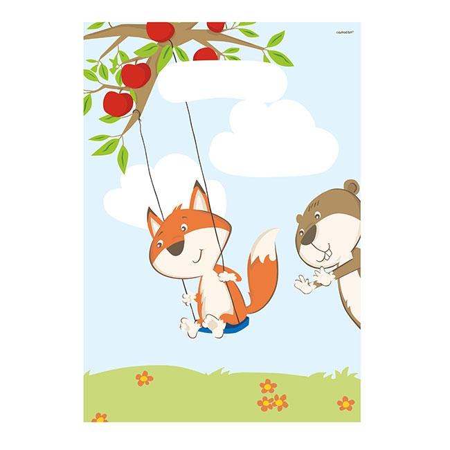 Die Geschenktütchen "Tierische Freunde" werden im 8er Pack geliefert und bestehen aus beidseitig bedruckter Kunststofffolie. Sie haben eine Länge von ca. 23,5 cm und eine Breite von ca. 16,2 cm. Auf den Tütchen sind die Freunde Fuchs und Biber beim Schaukeln abgebildet.