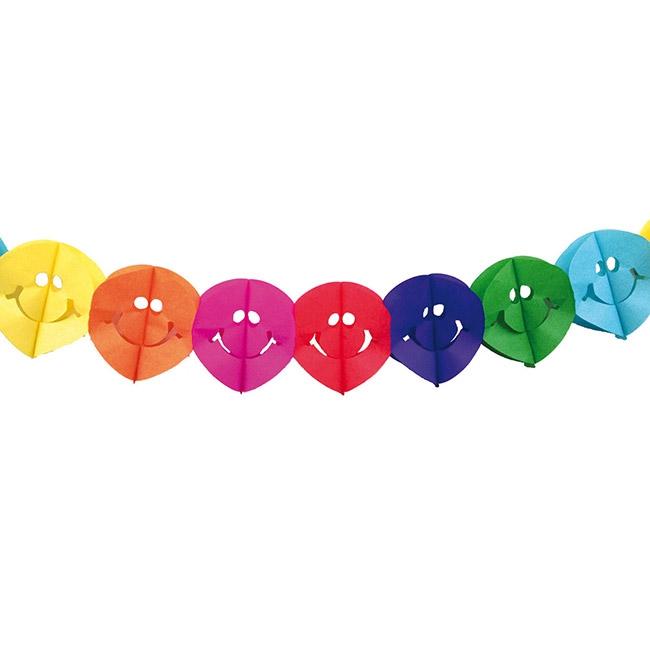 Die Girlande "Smilie" ist schwer entflammbar und hat eine Länge von ca. 4 m. Sie besteht aus Wabenpapier und hat eine Höhe von ca. 17 cm. Die Girlande zeigt bunte, lachende Smilies. Mit der beigefügten Schnur können Sie die Girlande ganz einfach frei im Raum oder an der Wand befestigen.