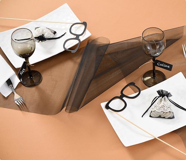 Der glänzende Tischläufer hat eine Gesamtlänge von ca. 5 m und besteht aus Organza. Er ist außerdem ca. 28 cm breit und in vielen Farben erhältlich. Sie können wählen zwischen: Weiß, Grau, Rosa, Rot, Türkis, Grün, Schwarz, Pink oder Elfenbein.