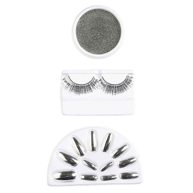 Lieferumfang: Fingernägel, Wimpern, Glitzer-Schminke