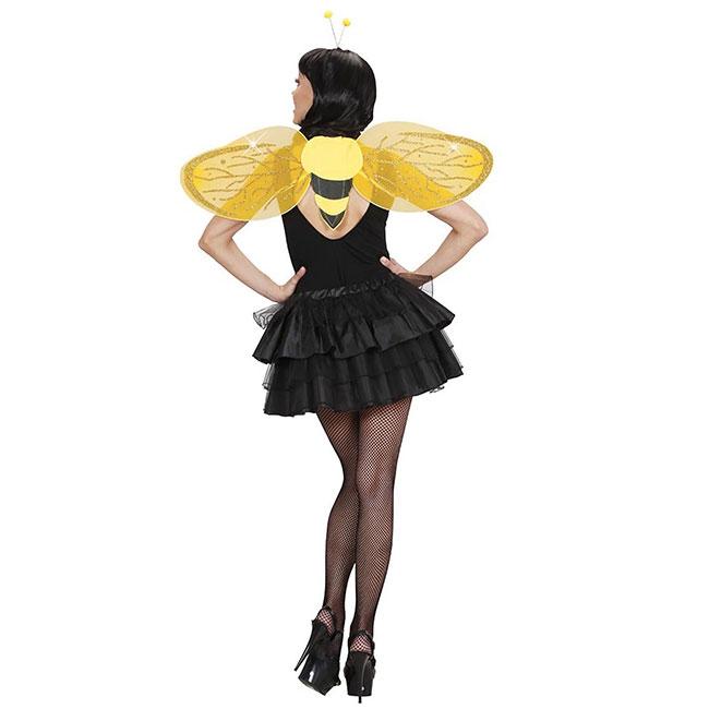 Mit diesem süßen Bienen-Set ist man an Karneval super verkleidet. Das Set besteht aus einem Paar Flügeln und einem Haarreif mit Fühler. Beide Accessoires sind mit goldenem Glitzer überzogen, sodass das Bienchen Kostüm besonders edel wirkt. Die Flügel werden mit einem elastischen Band um die Schulter gezogen.