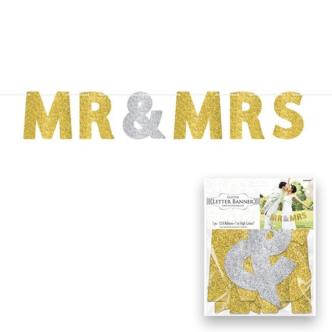 Glitzer Buchstaben-Girlande "Mr & Mrs" 3,65 m