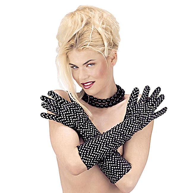 Diese Handschuhe wirken edel, schick und reichen bis über den Unterarm. Die Länge beträgt ca. 42 cm. Der Handschuh ist schwarz mit Applikationen von silber glitzernden Pünktchen.Somit glitzert und funkelt alles. Der Lieferumfang enthält 1 Paar Handschuhe.
