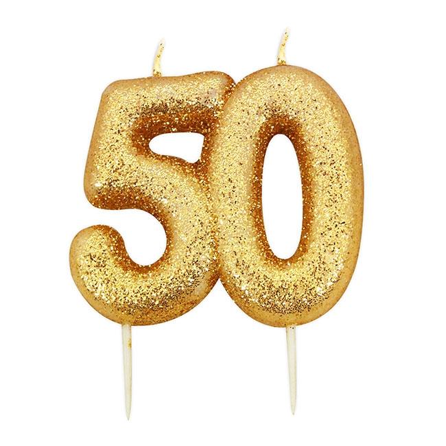 Glitzernde Zahlenkerze "Goldene 50" 9 cm