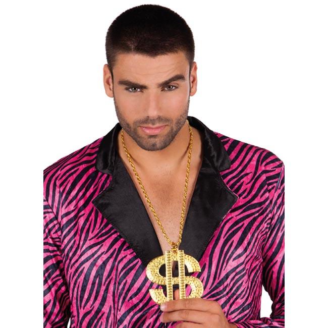 Mit dieser protzigen Kette sind Sie garantiert der Star unter allen Party-Pimps! Haben Sie die fette Kohle und wollen dies auch zeigen oder sind Sie einfach nur total cool und prollig?! Die goldene Halskette mit Dollar-Anhänger kommt da gerade wie gerufen! Die goldene Metall-Kette und der Anhänger zusammen da. 50 cm lang und kann super von Männern und auch Frauen getragen werden.