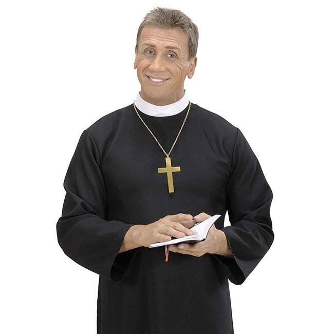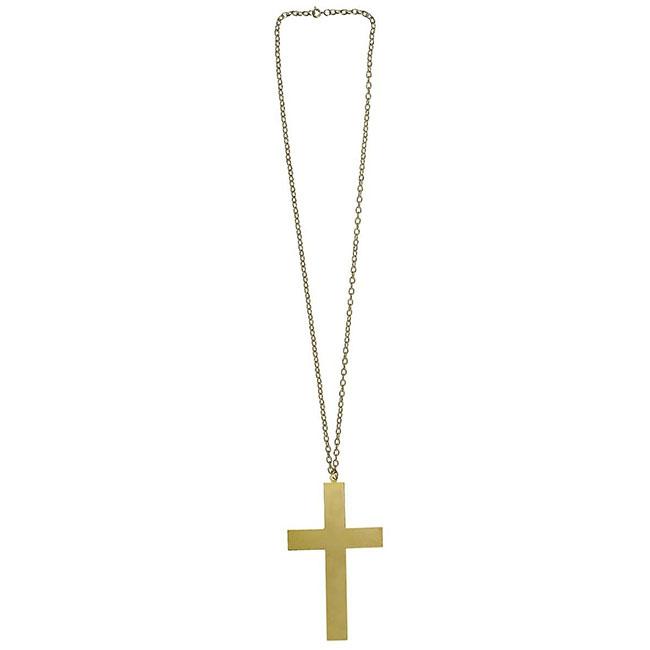 Mit dieser goldenen Kette hat man ein perfektes Accessoire für ein Priester-Kostüm zu Karneval! Die Kette besteht aus einzelnen Gliedern in Gold und der Anhänger ist ein Kreuz mit einer Größe von ca. 11 x 7 cm.