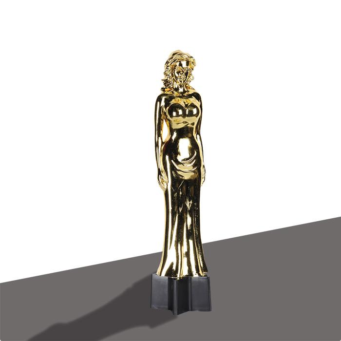 Die gold-glänzende Award-Statuette ist mit ihren weiblichen Kurven der Hingucker auf jeder Kino- oder Hollywood-Mottoparty. Die Statue eignet sich aber genauso gut als Trophäe für eine extravagante Preisverleihung, z.B. für das "Beste Kostüm der Mottoparty".