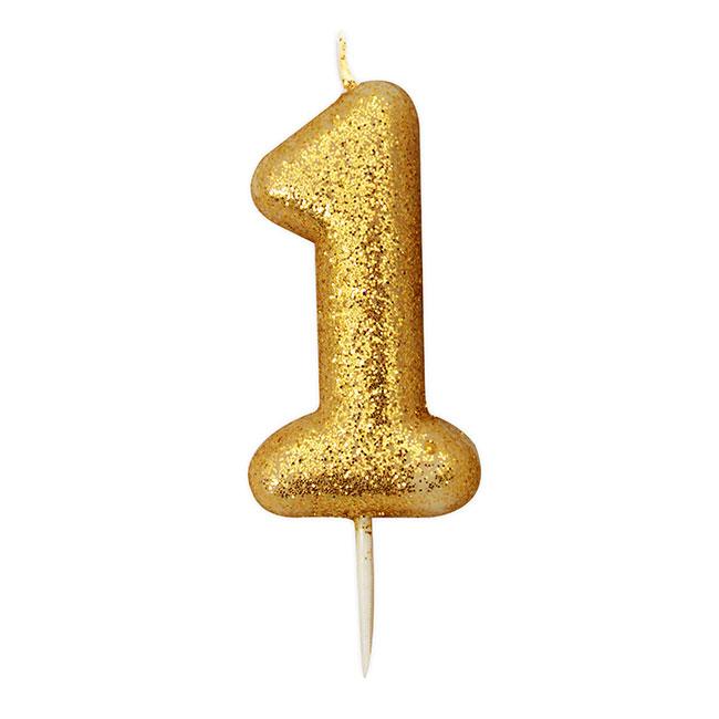 Artikel: Goldene Zahlenkerze "Glitzer" 9 cm-1