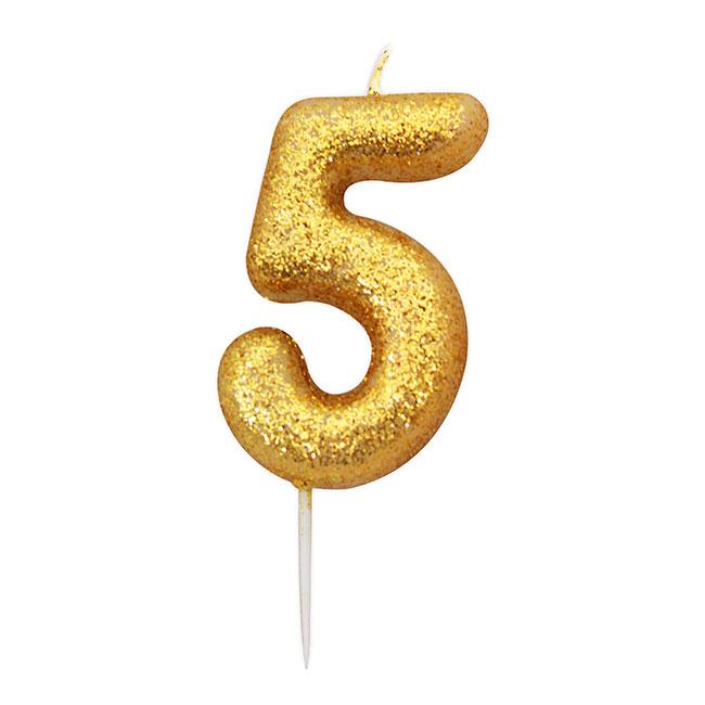 Goldene Zahlenkerze "Glitzer" 9 cm-5