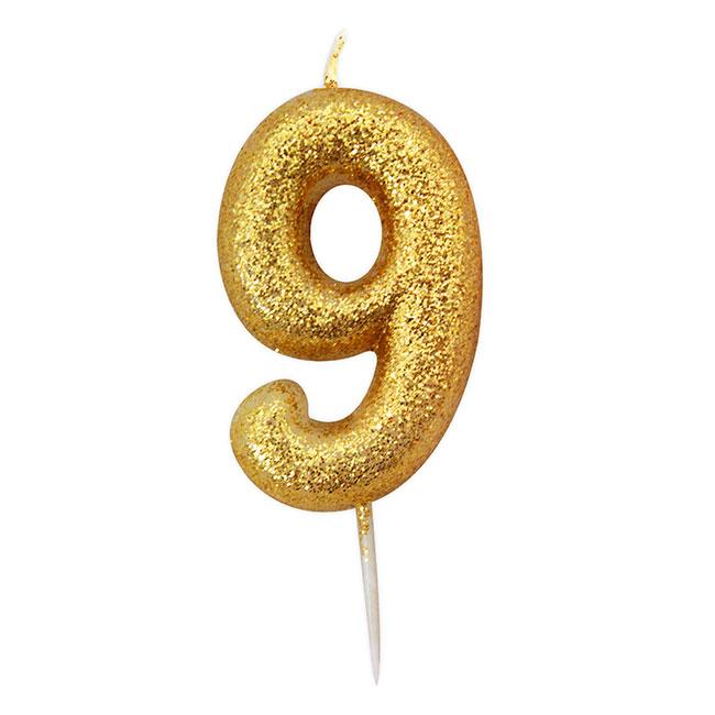 Goldene Zahlenkerze "Glitzer" 9 cm-9