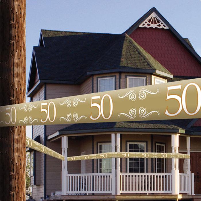Wofür könnte die Zahl 50 stehen? Genau, für eine goldene Hochzeit, für einen 50. Geburtstag oder ein anderes 50-jähriges Jubiläum. Und egal welcher Grund, diese Feierlichkeiten sind auf jeden Fall eine Party wert. Und damit auch jeder weiß, dass Sie etwas zu feiern haben, eignet sich dieses Absperrband besonders gut. Sie können Ihr Haus, das Gebäude in dem Sie feiern oder den Raum mit diesem Band absperren. Es ist ca. 15 m lang, hat die Farbe gold und ist einseitig mit Verzierungen und der Zahl 50 bedruckt.