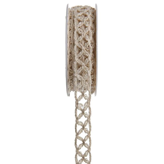 Das Häkel-Geschenkband "Natur" besteht aus Polyester und hat eine Breite von ca. 1,5 cm und eine Länge von ca. 5 m. Es ist in einem beigefarbenen Naturton gehalten.