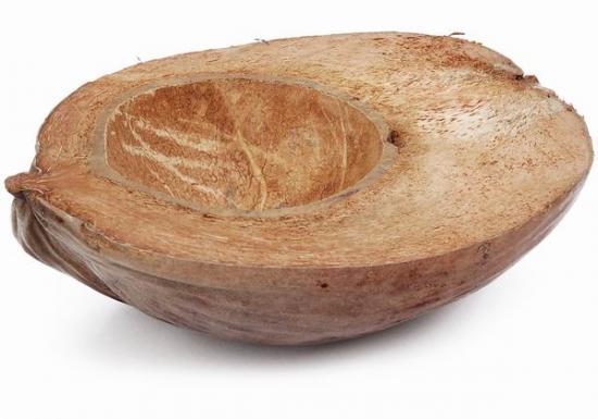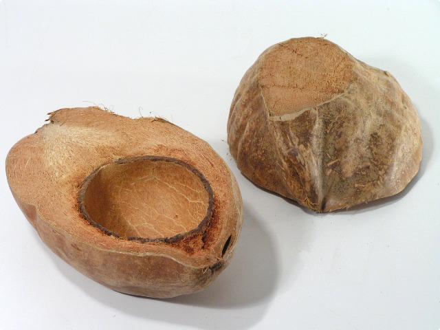 • Halbe Kokosnuss auch mit Ansicht der Unterseite.