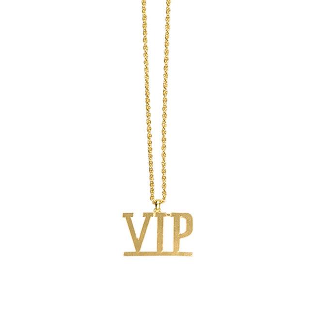 Die Halskette "VIP" besteht aus Metall und ist ca. 37 cm lang (Umfang ca. 74 cm). Der ca. 5 x 4 cm große goldene VIP Anhänger, strahlt nicht weniger als die Kette selbst. Heben Sie sich von der Masse ab! Im Lieferumfang ist ausschließlich die Kette enthalten. Andere Artikel die Sie dem Foto entnehmen können, werden NICHT mitgeliefert.
