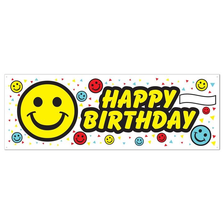 Artikel: Happy Birthday-Banner "Bunte Smileys" 1,5 m x 53 cm