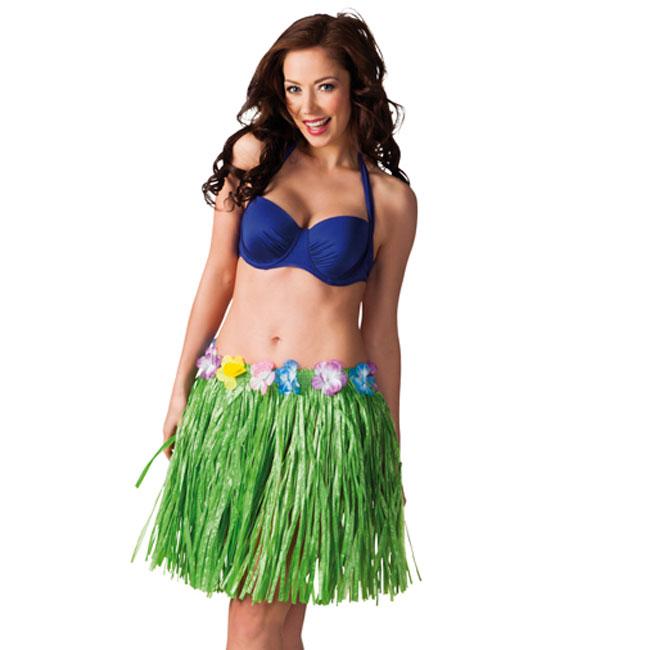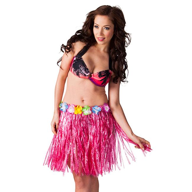 Mit diesem tollen Rock wird jede Frau wie eine zauberhafte Hawaii-Tänzerin aussehen. Ein Hawaii-Kostüm eignet sich nicht nur für Karneval und Fasching, sondern auch für eine Mottoparty. Denn eine Hawaii-Mottoparty liegt super im Trend. Der Rock ist in fünf verschiedenen Farben wählbar: Pink, Gelb, Grün, Blau oder Lila. Der Rock hat eine Länge von ca. 45 cm und ist am Bund mit Blüten verziert. Der Bund ist elastisch.