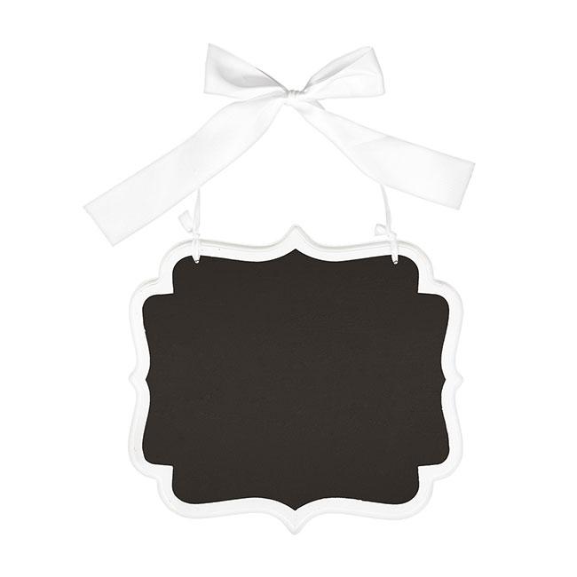 Die romantische Holztafel können Sie nach Ihren eigenen Wünschen mit Kreide oder einem Tafelstift beschriften. Sie misst ca. 25,5 x 23,5 cm. Die weiß lackierte Tafel ist auf der Vorderseite mit schwarzem Tafellack versehen. Mit der angebrachten Satinschleife kann die Tafel aufgehängt werden.
