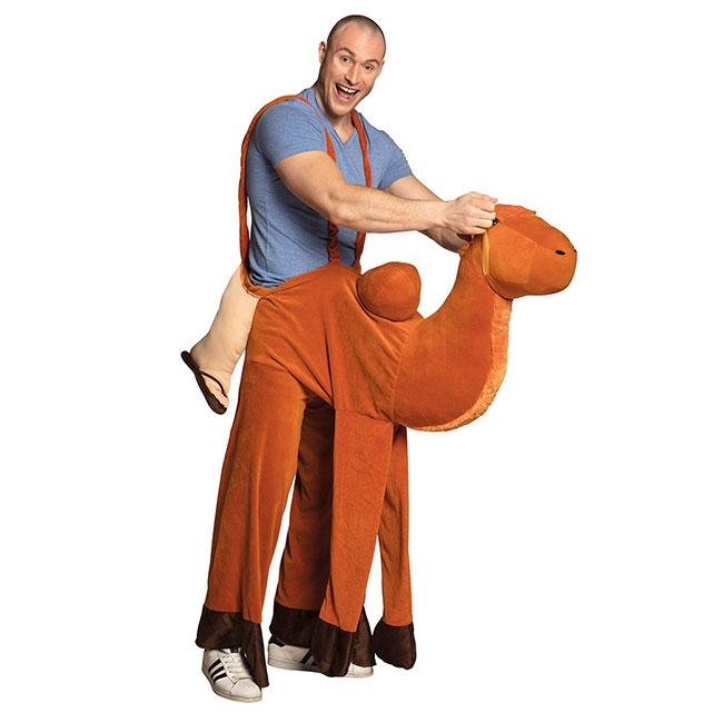 Auf der Suche nach einem außergewöhnlichen Kostüm? Dann sichern Sie sich schnell unser Huckepack Kostüm "Kamel". Das Kostüm wird in einer Einheitsgröße für Erwachsene geliefert. Wenn Sie sich schon immer mal einen Kamelritt gönnen wollten, dann sind Sie hier auf der absolut sicheren Seite. Einmal angezogen stellen Ihre Beine die Hinterbeine des Kamels dar. Die Länge vom Bund zum Saum beträgt ca. 114 cm. Getragen wird das Kostüm mit ca. 55 cm langen Schulterriemen. Neben dem ca. 60 cm langen Hals mit Kopf, ist das Kostüm auch mit ca. 35 cm langen, mit Flip-Flops bestücken Beinen des Reiters versehen. Die treuen Knopfaugen dieses Wüstenschiffs werden Ihr Herz sicherlich im Sturm erobern.