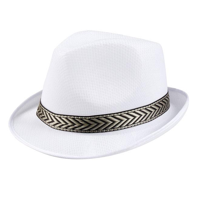 Der Hut "Trilby" wird in einer Einheitsgröße für Erwachsene geliefert. Je nach Auswahl ist der Hut schwarz, weiß, gelb, neongrün, rosa oder neonorange. Ein Hutband in einem dunklen Goldton verziert den Hut zusätzlich.