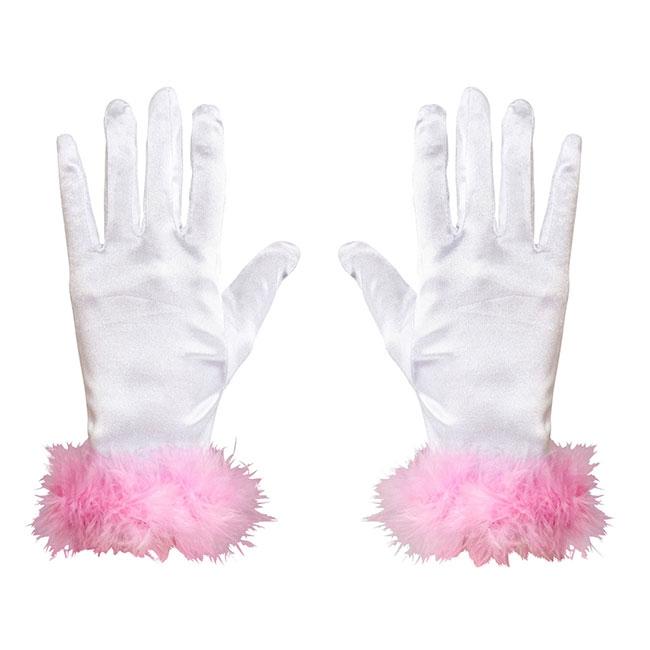 Artikel: Kinder-Handschuhe aus Satin mit Federn