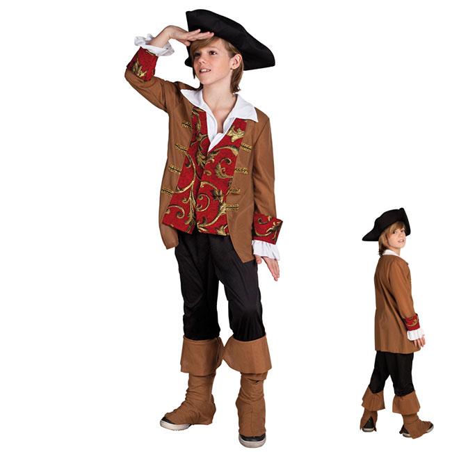 Das Kinder-Kostüm "Furchtloser Pirat" ist in den Größen für Kinder im Alter von 4-6 Jahre, 7-9 Jahre oder 10-12 Jahren erhältlich. Im Lieferumfang enthalten sind jeweils: Hut, Oberteil, Hose und Stiefelstulpen.