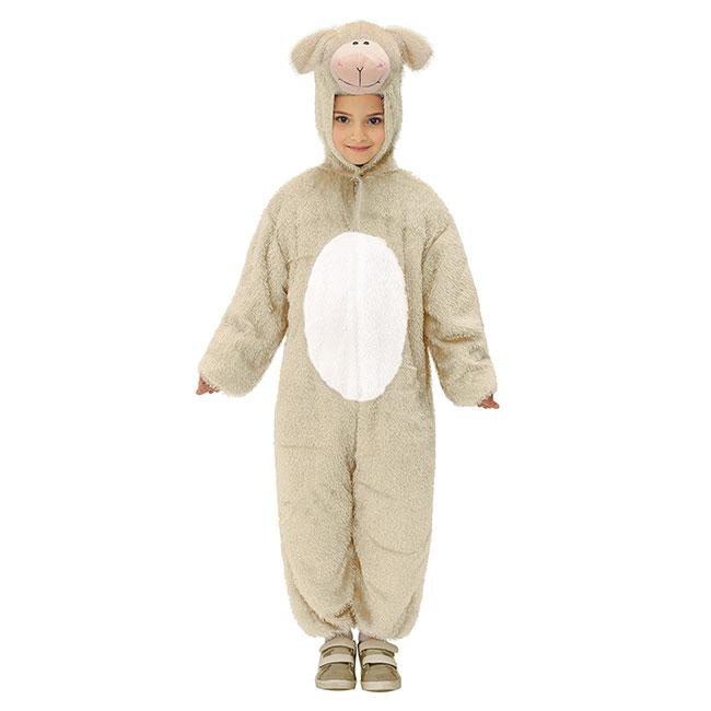 Das Kostüm ist ein Einteiler, der in Form eines kleinen Lämmchens designet ist. Er wird mit Hilfe eines Reißverschlusses an der Vorderseite ganz einfach geschlossen und besonders weich. Das Kostüm ist in der Größe 134 erhältlich.