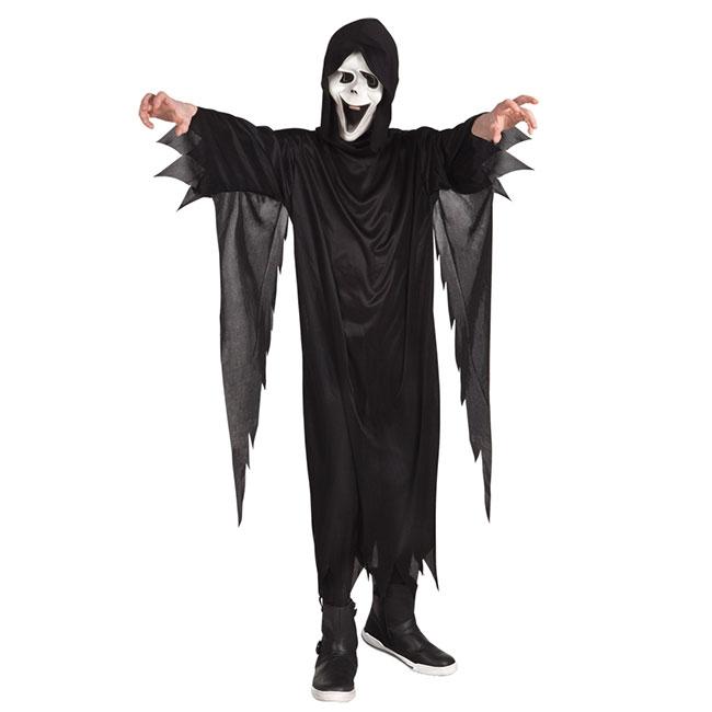 Hui, wie gruselig! Das Kinder-Kostüm "Nachtschrecken" ist zweiteilig und besteht aus einer schwarzen Robe sowie einer Maske. Die Robe wird durch einen Klettverschluss im Nacken geschlossen. Je nach Auswahl ist es in den Größen für 4-6 und 7-9 Jahre erhältlich. Bitte beachten Sie die Maße. Die ungedehnte Breite wurde von Achsel zu Achsel gemessen, die Länge vom Kragen zum Saum. Im Lieferumfang sind lediglich die Robe und die Maske enthalten. Alle anderen abgebildeten Artikel werden NICHT mitgeliefert.