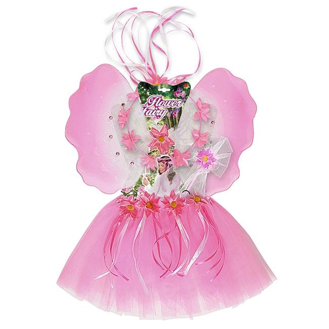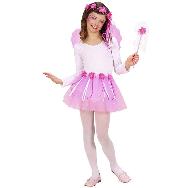 Dieses süße Set für Kinder ist wirklich zauberhaft und in toller rosa Farbe gefertigt. Es wird im 4-teiligen Set geliefert und beinhaltet einen Rock in Pink mit Blümchen, zudem Flügel mit Deko-Steinchen, einen Zauberstab und einen Haarkranz mit Blüten.