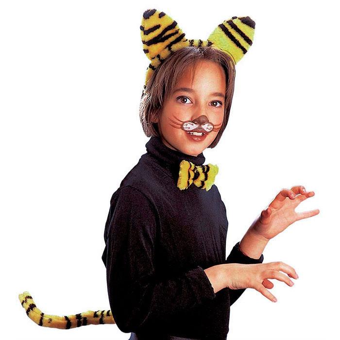 Das Kinder-Set "Tiger" ist im gelb-schwarzen Tiger-Look gehalten. Im Set befinden sich Ohren, die über einen angenehm sitzenden Haarreifen getragen werden, eine Fliege sowie ein Tigerschwanz vervollständigen das Kostüm.