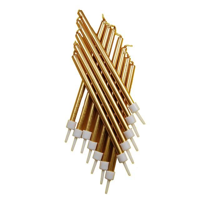 Kleine Kerzen "Metallic" mit Halter 12er Pack-gold