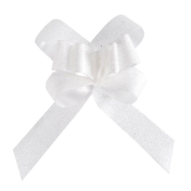 Kleine selbstraffende Glitzer-Schleife 10er Pack-weiß
