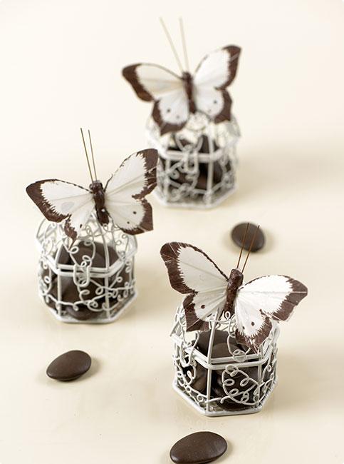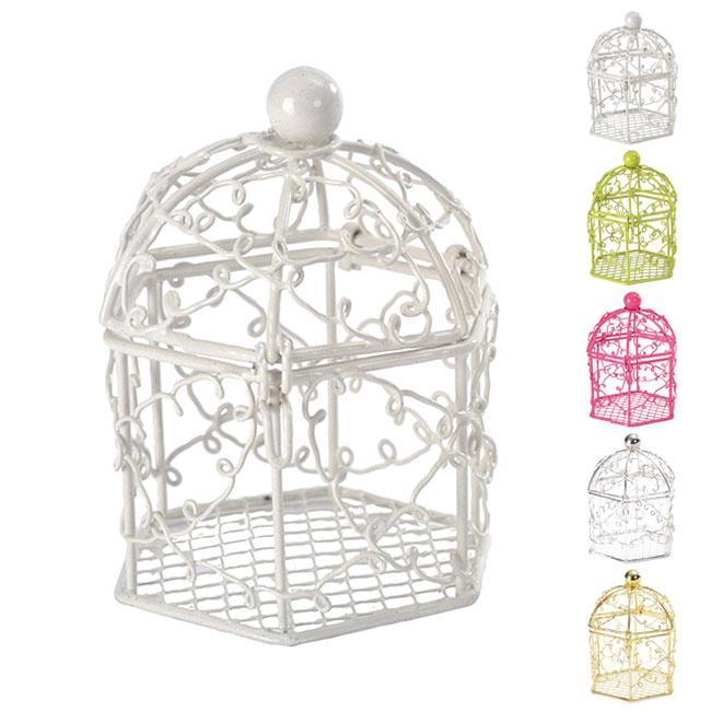 Die Vogelkäfige sind aus Metall hergestellt, haben eine Größe von ca. 5 x 6 cm und werden in einem 2er Pack geliefert. Sie können individuell befüllt und anschließend verschlossen werden. Wählen können Sie zwischen folgenden Farben: Weiß, Gold, Silber, Grün oder Pink.