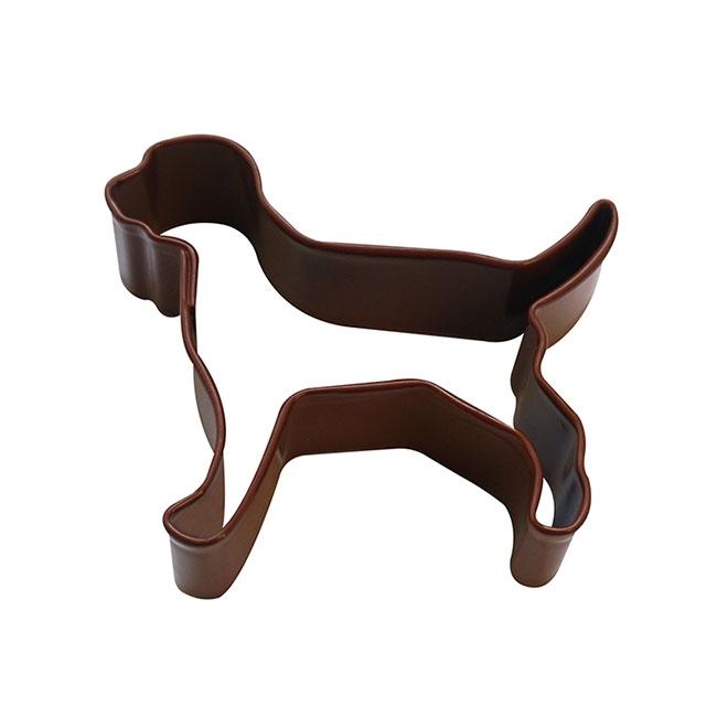 Der kleine Ausstecher "Hund" ist ca. 5 cm breit und ca. 4,5 cm hoch. Er besteht aus beschichtetem Metall und ist braun. Die tatsächliche Farbe kann allerdings, je nach Bestand, von der Farbe der Abbildung abweichen.