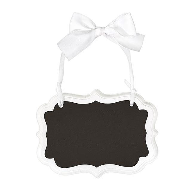 Das kleine Tafelschild "Traumhochzeit" ist ca. 14 x 10 cm groß. Es besteht aus weißem Holz und schwarzem Tafellack und kann daher mit einem Kreidestift beschriftet werden. Außerdem ist an dem Schild eine weiße Schleife aus Satinband befestigt, sodass Sie die Deko ganz einfach an der Wand aufhängen können.