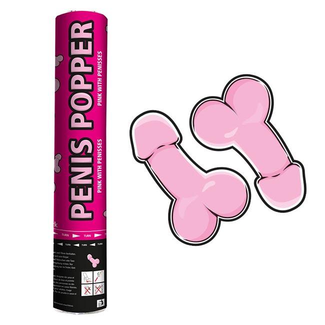 Die Konfetti-Kanone "Little Willy" besteht aus Pappe und ist ca. 28 cm hoch. Befüllt ist sie mit kleinen Penissen aus Papier. Dreht man den oberen und unteren Teil in Pfeilrichtung, lösen Sie einen wahren Konfettiregen aus. Die Konfetti-Kanone sollte nur von Erwachsenen und im Freien benutzt werden.