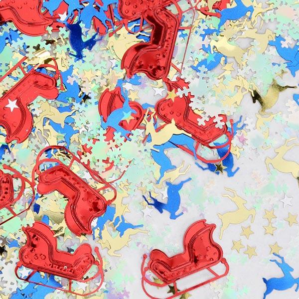 Das Konfetti "Weihnachten" besteht aus metallischer Folie. Es hat eine maximale Größe von ca. 3,5 x 2 cm (Schlitten). Im Lieferumfang sind jeweils ca. 14 g enthalten.