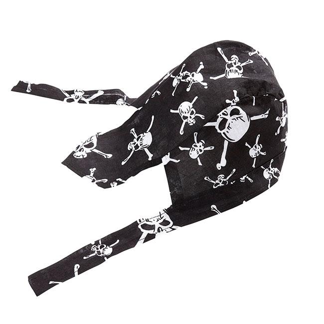 Das Kopftuch "Knochen und Schädel" wird in einer Einheitsgröße für Erwachsene geliefert. Es ist schwarz, und mit weißen Schädeln und Knochen in verschiedenen Größen bedruckt. Das Kopftuch ist bereits in Kopfform genäht, und kann ganz einfach mit den 3 Bändern am Hinterkopf gebunden werden. Im Lieferumfang ist nur das Kopftuch enthalten!