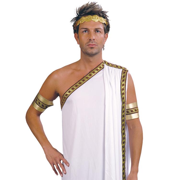 Eros ist unter den Göttern der Gott der begehrlichen Liebe...also wohl das beste Kostüm, was Sie sich für Karneval oder eine Mottoparty im Griechenland-Stil aussuchen können. Das Eros-Kostüm besteht aus einer weißen Toga mit einer braun-gelben Borte, die sich an der gesamten Toga entlang zieht. Zu dieser Toga erhalten Sich außerdem noch einen Haarreif in Form eines goldenen Blätterkranzes und zwei Armbändern, die am Oberarm getragen werden und mit einem elastischen Band ausgestattet sind.