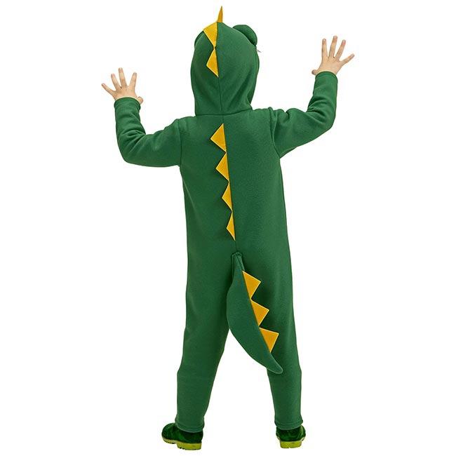 Das Kostüm stellt einen grünen Drachen dar. Es hat hellgrüne Zahlen vom Kopf bis zur Schwanzspitze und gefährliche Zähne. Die Kapuze ist am Overall befestigt und wird bis in die Stirn gezogen. So sieht sie fast aus wie eine Maske.
