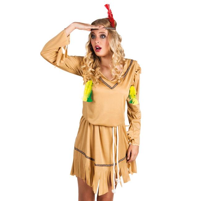 Zum Lieferumfang dieses Kleides gehören außerdem eine Kordel, die als Gürtel zu benutzen ist und ein Stirnband. An den Ärmeln und am Saum befinden sich die typischen Fransen. Das Kleid hat einen V-Ausschnitt, der mit einem indianischen Band verziert ist. Die gleiche Verzierung befindet sich auch am Saum. Das Kleid hat eine Einheitsgröße, die etwa der Konfektionsgröße M entspricht. Der Tomahawk ist nicht im Lieferumfang enthalten.